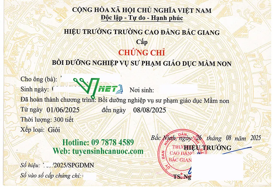 Lớp 1. Khóa học Nghiệp vụ sư phạm mầm non – Cấp chứng chỉ Trường Cao đẳng Bắc Giang: