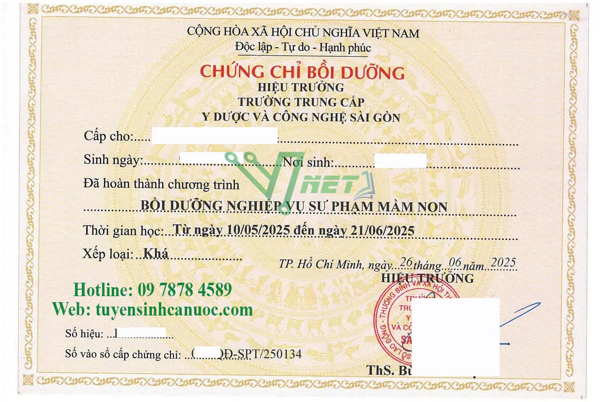 Lớp 1. Khóa học Nghiệp vụ sư phạm mầm non – Cấp chứng chỉ Trường Trung cấp Y Dược và Công nghệ Sài gòn: