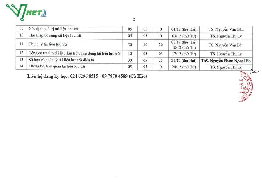 Trung tâm bồi dưỡng Nghiệp vụ VNET liên kết với Trường ĐH Khoa học xã hội và nhân văn Hồ Chí Minh mở lớp “Nghiệp vụ văn thư lưu trữ”, nội dung chương trình cụ thể như sau: