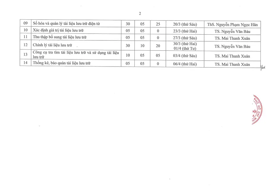 Lịch học lớp Văn thư lưu trữ HCM (Khóa 34)