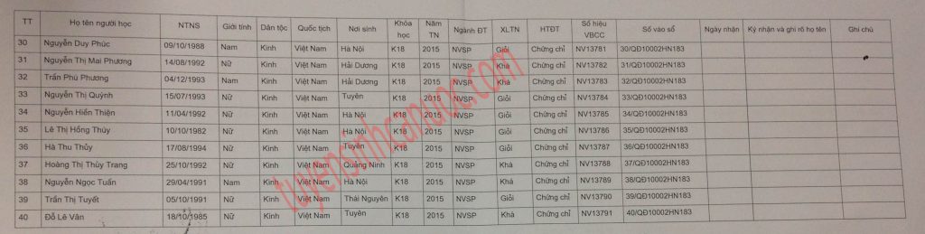 Bảng điểm lớp TC-SCF 01 Bảng điểm lớp TC-SCF 01 Thông báo mở lớp Nghiệp vụ sư phạm tại Lào Cai Danh sách lớp GV-SCF 01 (Chốt)