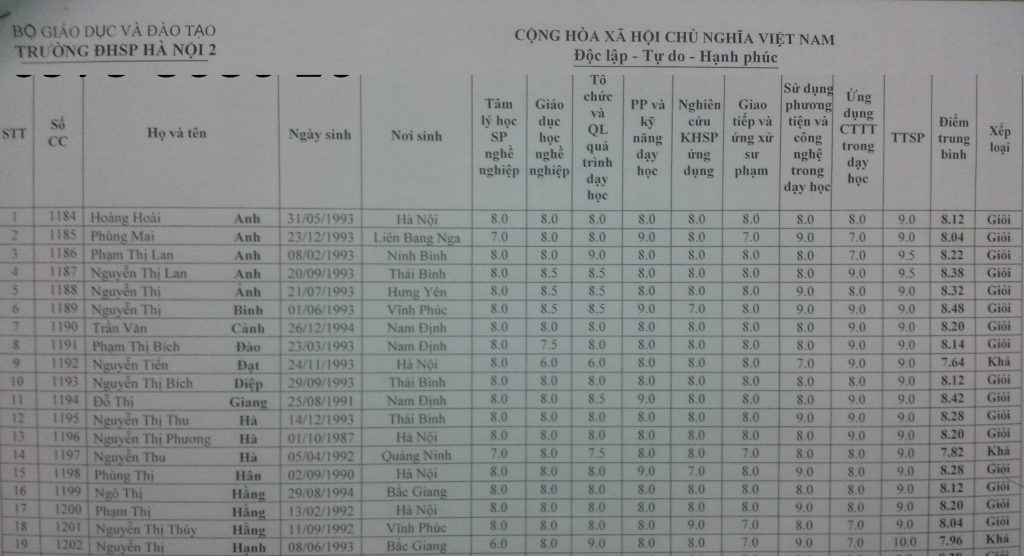 Bảng điểm lớp TCCN khóa K19 Bảng điểm lớp TCCN khóa K19 Danh sách lớp NVSP Giảng viên khóa K16 Bảng điểm lớp NVSP Giảng viên khóa K13
