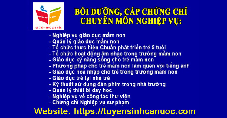 – Chứng chỉ “Nghiệp vụ Giáo dục Mầm non” cho đối tượng làm việc tại các cơ sở giáo dục mầm non chưa qua đào tạo chuyên môn, nghiệp vụ về giáo dục mầm non.