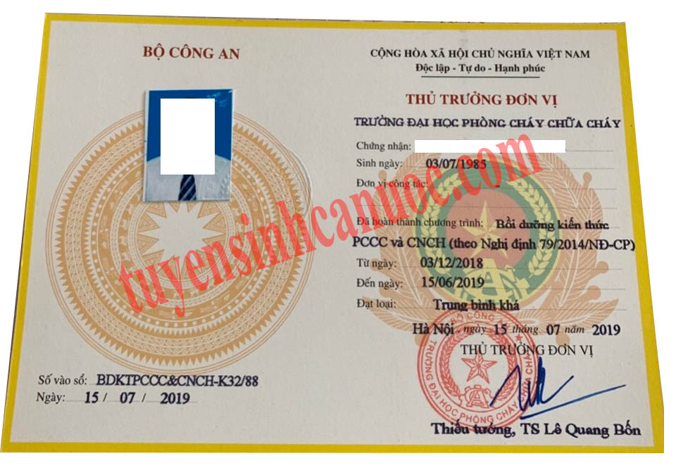Mẫu Chứng chỉ Phòng cháy chữa cháy