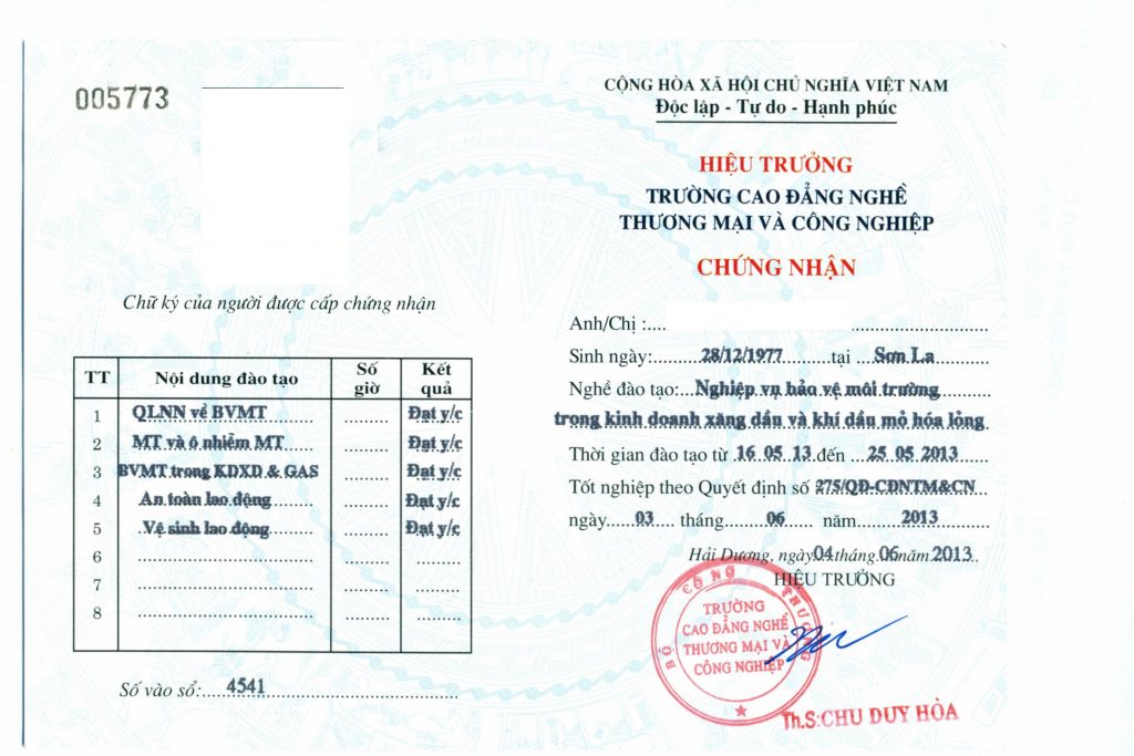 4. Chứng chỉ: Kết thúc khóa học, học viên đạt yêu cầu sẽ được cấp chứng chỉ, giấy chứng nhận có giá trị để hoàn thiện điều kiện kinh doanh xăng dầu, khí dầu mỏ hóa lỏng (LPG) theo quy định của pháp luật hiện hành.