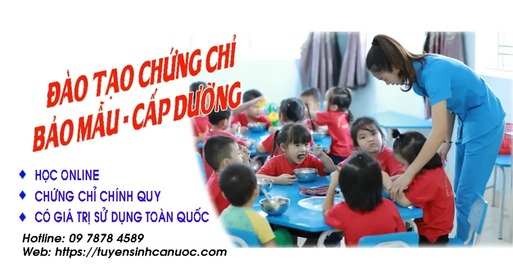 Tuyển sinh lớp chứng chỉ nghề bảo mẫu, cấp dưỡng, sau khóa học học viên được cấp chứng chỉ theo quy định, chứng chỉ có giá trị trên toàn quốc và vô thời hạn.