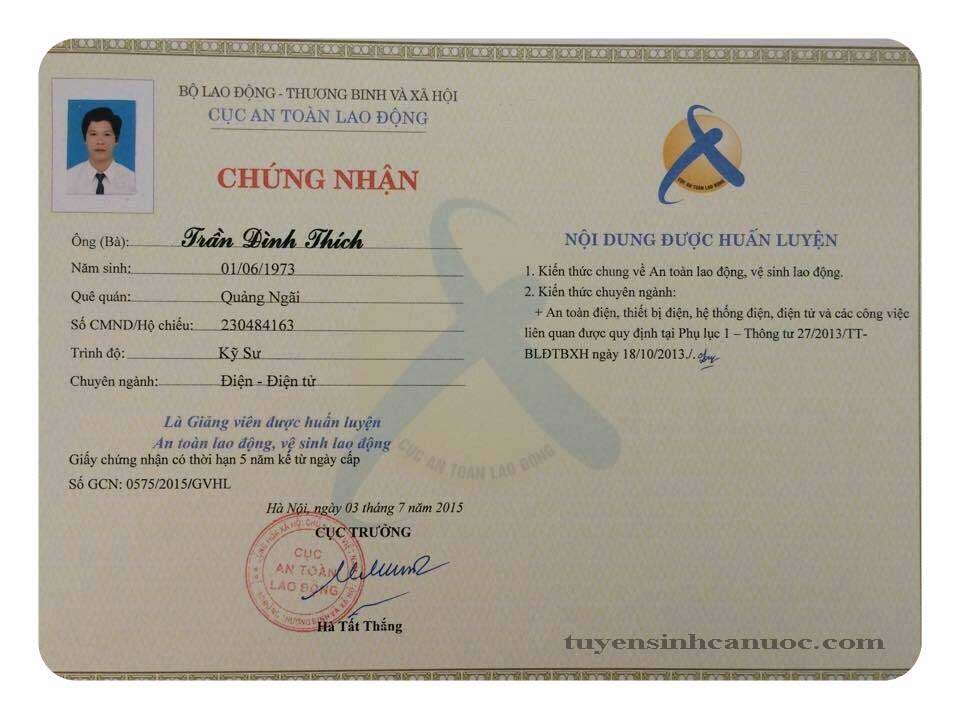 *** Chứng chỉ cuối khóa:Học viên tham dự khóa Huấn luyện và sát hạch đạt yêu cầu sẽ được cấp Chứng chỉ Giảng viên an toàn lao động, vệ sinh lao động phù hợp.