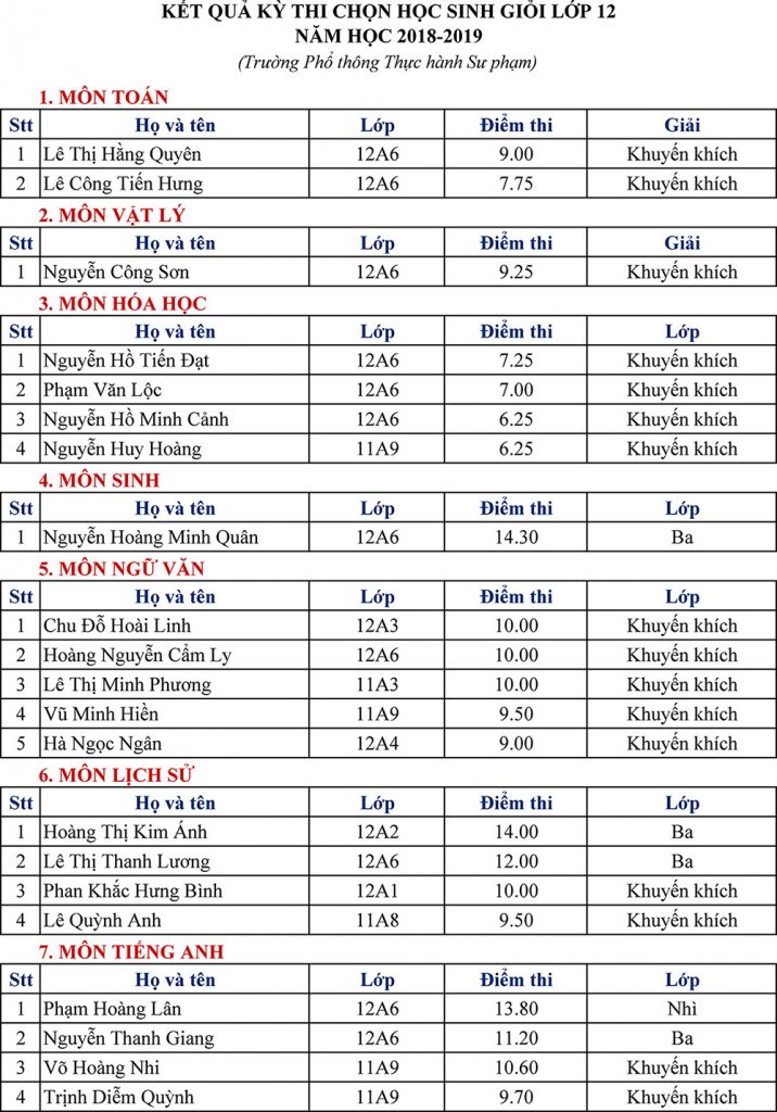 Kết quả thi lớp NVSP giảng viên K12