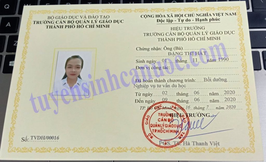 Kết thúc khóa học, học viên được thi cấp chứng chỉ theo đúng quy định của Bộ Giáo Dục, chứng chỉ có giá trị trên toàn quốc và vô thời hạn.