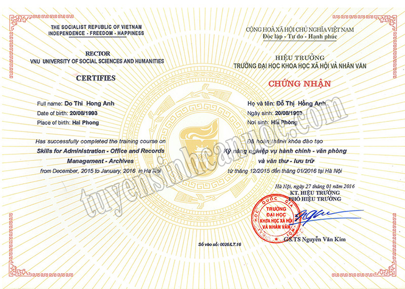 Khai giảng lớp Văn thư lưu trữ ngày 07/10/2017. Kết thúc khóa học, học viên được thi cấp chứng chỉ do trường ĐHKHXH&NV cấp theo quy định BGD & ĐT ban hành.