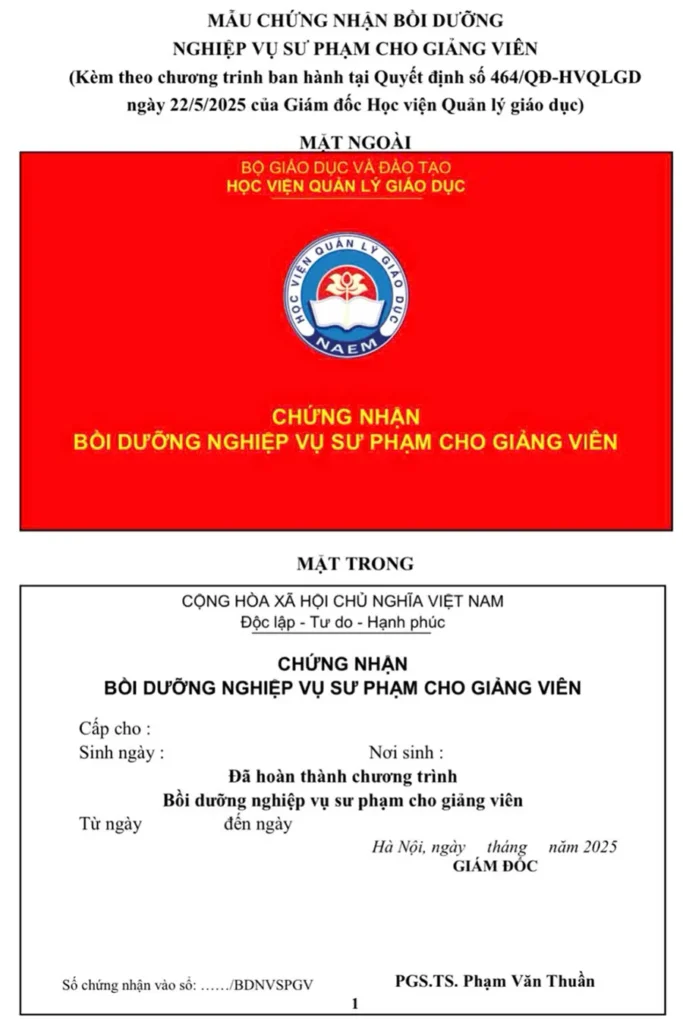 Mẫu chứng nhận cuối khóa học: