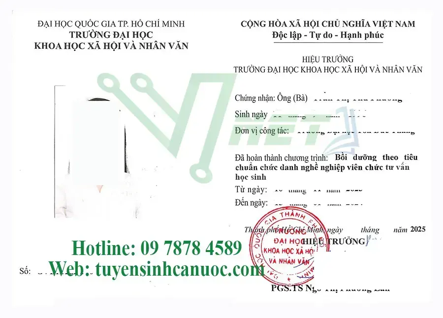 CHỨNG CHỈ CUỐI KHÓA HỌC: Cấp chứng chỉ trường Đại học khoa học xã hội và nhân văn Tp. HCM