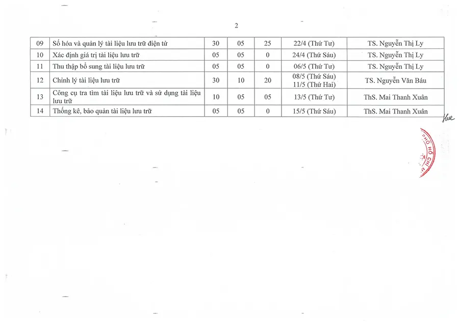 Lịch học lớp Văn thư lưu trữ HCM (Khóa 35)