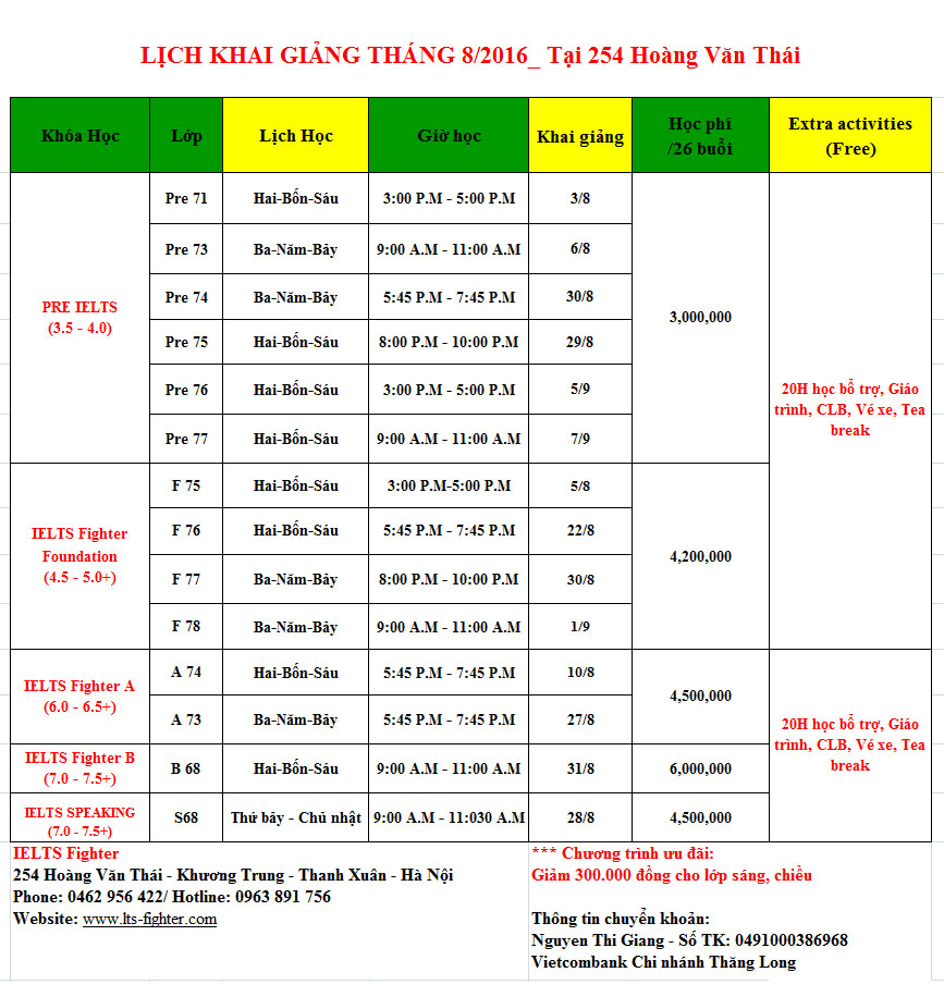 STT | CHƯƠNG TRÌNH | THỜI GIAN HỌC | HỌC PHÍ | NGÀY KHAI GIẢNG |