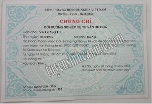 Mẫu chứng chỉ nghiệp vụ tư vấn du học. Thời gian đào tạo 15 buổi theo quy định. Kết thúc khóa học, học viên được cấp chứng chỉ theo đúng quy định của BGD&ĐT XEM => NỘI DUNG ĐÀO TẠO