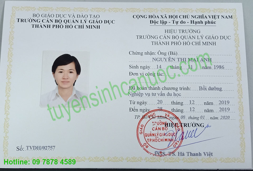 Mẫu chứng chỉ Nghiệp vụ tư vấn du học Mẫu chứng chỉ Nghiệp vụ tư vấn du học Điểm lớp Văn thư lưu trữ khóa tháng 12-2019 Lịch khai giảng các lớp tháng 2-2020