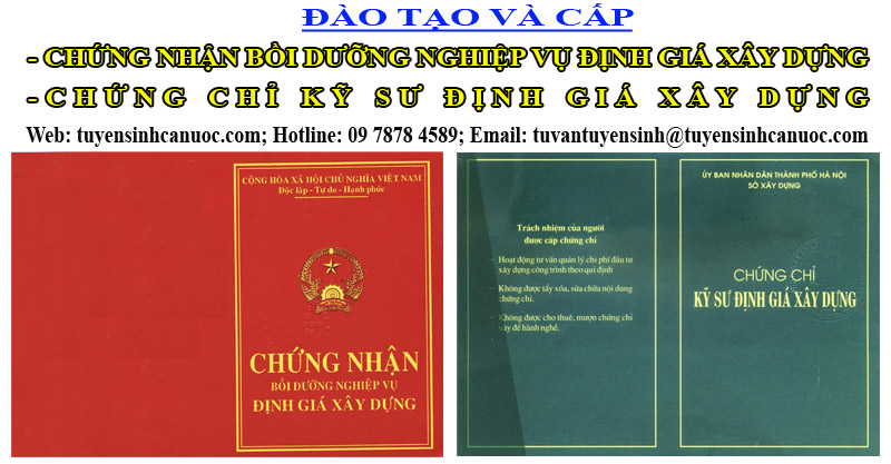 Bồi dưỡng, cấp chứng chỉ Nghiệp vụ đánh giá xây dựng. “CHỨNG NHẬN BỒI DƯỠNG NGHIỆP VỤ ĐỊNH GIÁ XÂY DỰNG” là điều kiện để xin cấp “CHỨNG CHỈ KỸ SƯ ĐỊNH GIÁ”.