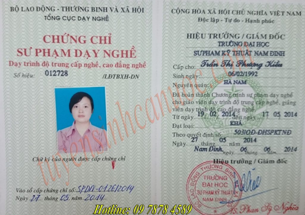 – Ghi đầy đủ, chính xác, rõ ràng các nội dung trong Chứng chỉ Sư phạm dạy nghề (tại trang 2 và trang 3) bằng loại mực màu đen, riêng họ và tên của học viên phải ghi bằng kiểu chữ in hoa.