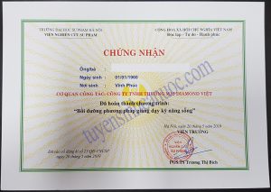 Bồi dưỡng giảng viên dạy kỹ năng sống. Cấp chứng chỉ cuối khóa học sau khi kết thúc khóa học theo đúng quy định của Bộ GD&ĐT. MỞ LỚP BỒI DƯỠNG PHƯƠNG PHÁP GIẢNG DẠY GIÁ TRỊ SỐNG VÀ KỸ NĂNG SỐNG