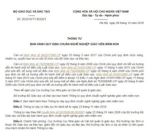 Quy định về chuẩn nghề nghiệp giáo viên mầm non theo quy định của Bộ