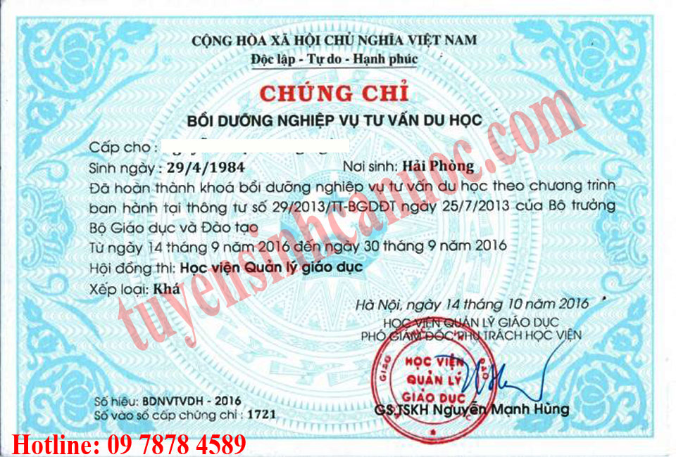 TB mở lớp Nghiệp vụ Tư vấn du học ngày 18/11/2018. Thời gian học liên tục các ngày trong tuần. Cấp chứng chỉ cuối khóa học theo đúng quy định của Bộ Giáo dục và Đào tạo, chứng chỉ có giá trị trên toàn quốc.
