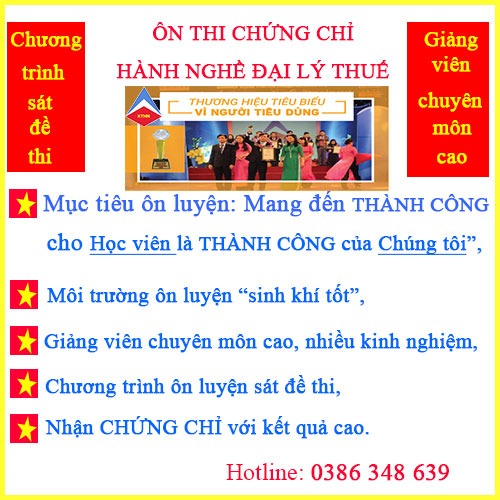 ÔN THI CHỨNG CHỈ HÀNH NGHỀ THUẾ – ĐẠI LÝ THUẾ