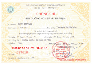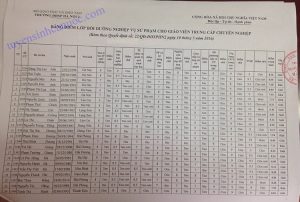 Danh sách lớp Nghiệp vụ sư phạm TC-SCF 05