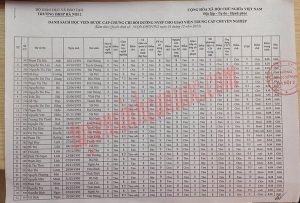 Danh sách lớp TCCN khóa K23