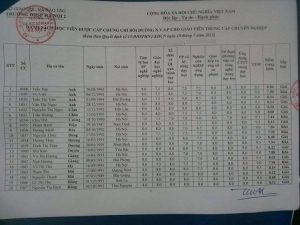 Danh sách lớp nghiệp vụ sư phạm K22 Khai giảng Ngày 08/8/2015