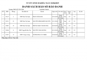 Danh sách phòng thi lớp TCCN khóa K19 STT SBD Họ Đệm Tên Ngày sinh Nơi sinh 1 1 Hoàng Hoài Anh 31/05/1993 Hà Nội 2 2 Phùng Mai Anh 23/12/1993 Liên Bang Nga 3 3 Phạm Thị Lan Anh 08/02/1993 Ninh Bình 4 4