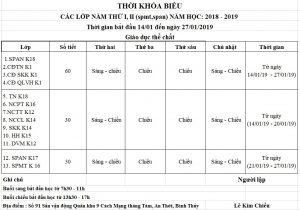 Lịch học lớp NVSP Giảng viên khóa K15. Thời gian học 20 tín chỉ. Học thứ 7, chủ nhật cả ngày. Tổng số môn học: 10 môn STT Học phần Số tín chỉ Thời gian Giảng viên 1. Giáo dục học đại cương 3 Thứ