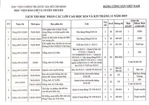 Lịch thi lớp Bồi dưỡng triết học sau đại học K01