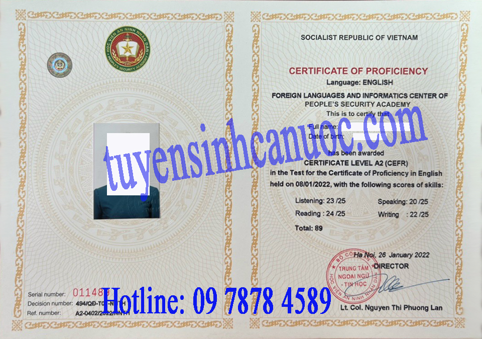 Tổ chức ôn và thi đánh giá năng lực tiếng Anh trình độ A2, B1, B2 theo khung tham chiếu chung Châu Âu (CEFR) – Học viện An Ninh