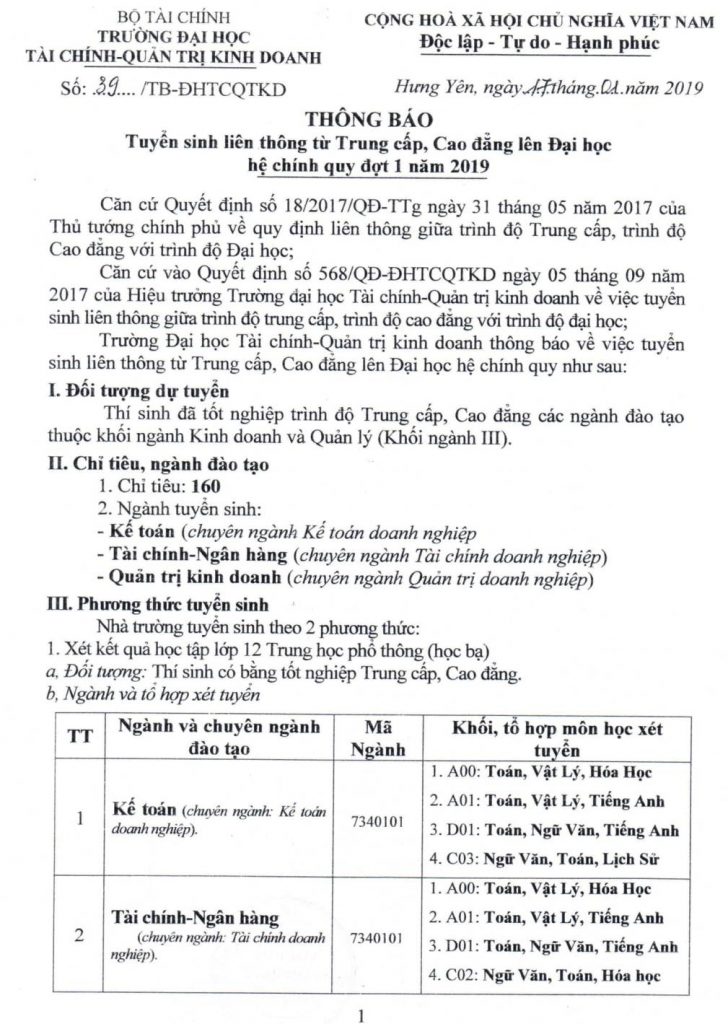 – Đại học chính quy: dành cho sinh viên tốt nghiệp đủ 36 tháng (tính đến ngày dự thi)